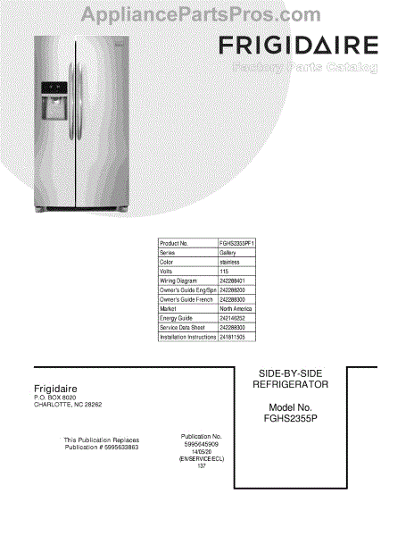 Parts for Frigidaire FGHS2355PF1: 01 - Cover Parts