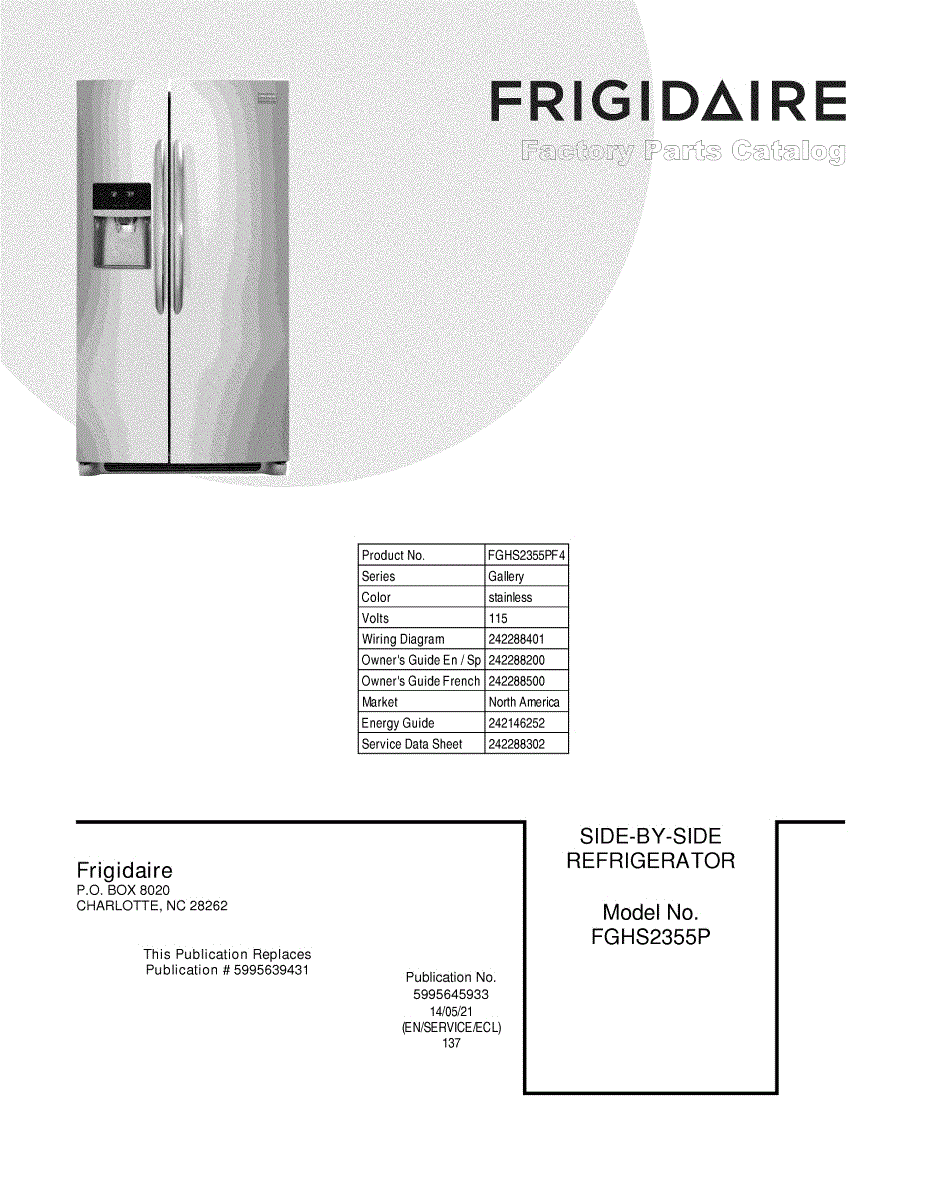 Parts for Frigidaire FGHS2355PF4: 01 - Cover Parts