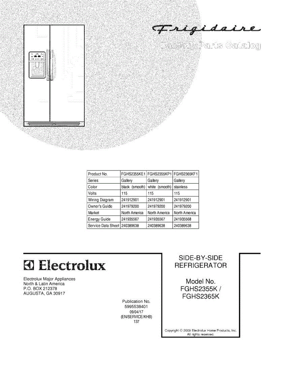 Parts for Frigidaire FGHS2365KF1: 01 - Cover Parts