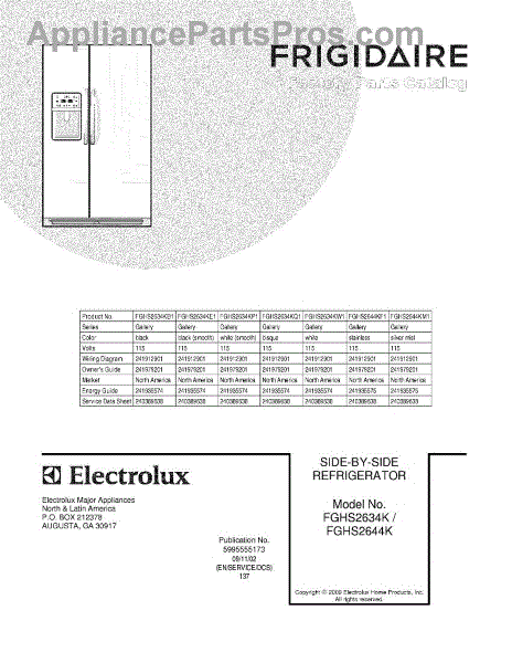 Parts for Frigidaire FGHS2644KF1: 01 - Cover Parts