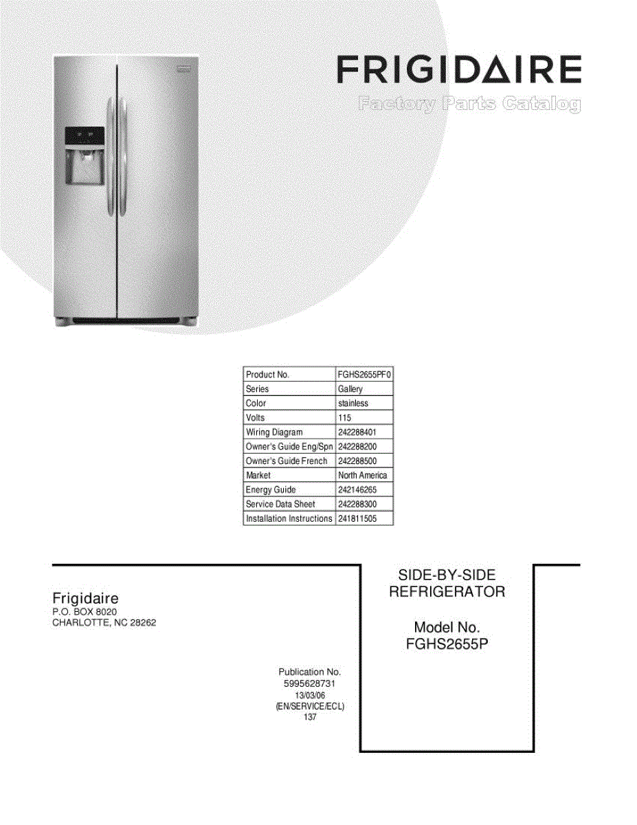 Parts for Frigidaire FGHS2655PF0: 01 - Cover Parts