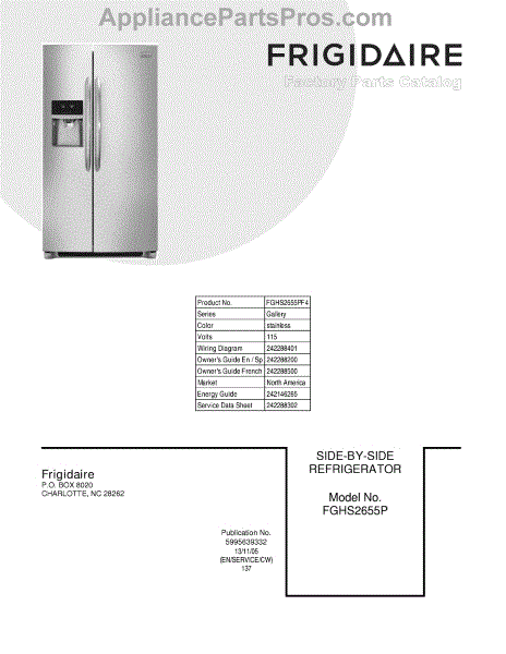 Parts for Frigidaire FGHS2655PF4: 01 - Cover Parts