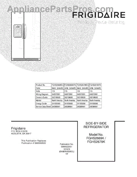 Parts for Frigidaire FGHS2669KE3: 01 - Cover Parts