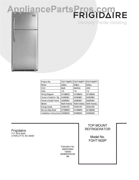 Parts for Frigidaire FGHT1832PP1: 01 - Cover Parts