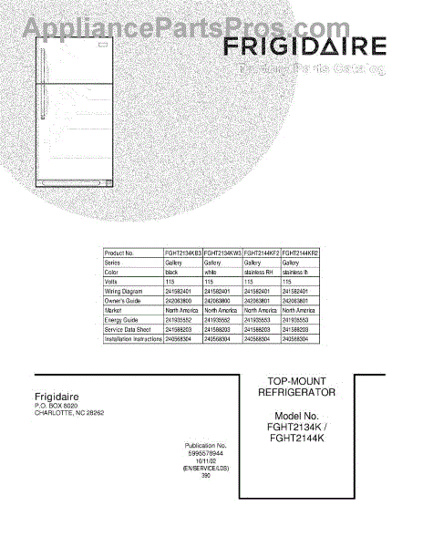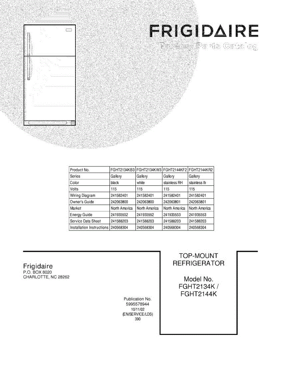 Parts for Frigidaire FGHT2134KB3: 01 - Cover Parts