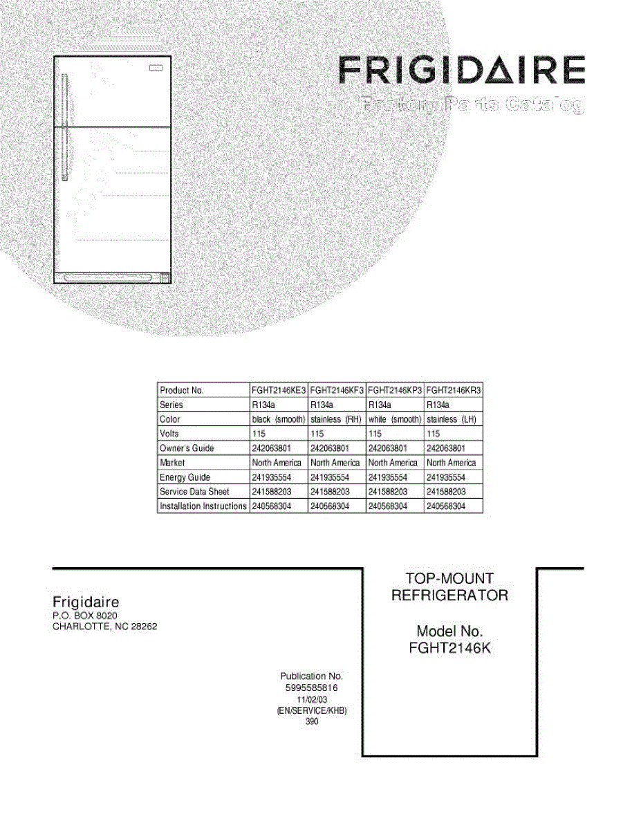 Parts for Frigidaire FGHT2146KR3: 01 - Cover Parts