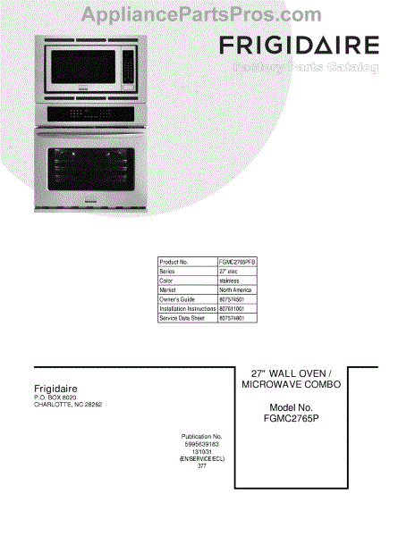 Parts for Frigidaire FGMC2765PFB: 01 - Cover Parts
