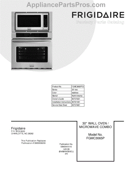 Parts for Frigidaire FGMC3065PFB: 01 - Cover Parts
