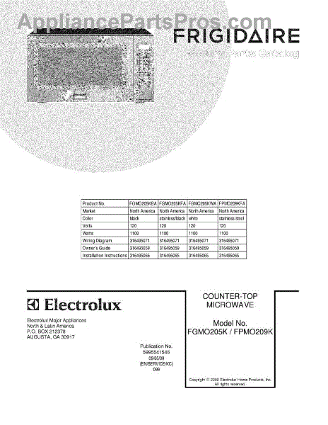 Parts for Frigidaire FGMO205KWA: 01 - Cover Parts