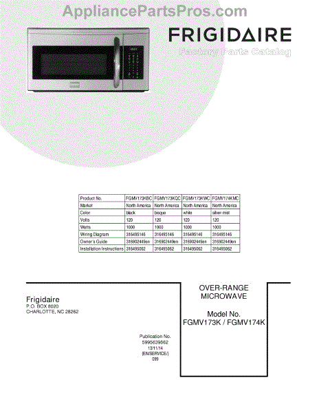 Parts for Frigidaire FGMV174KMC: 01 - Cover Parts