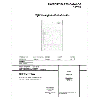 Parts for Frigidaire FGR211AS4: 01 - Cover Parts
