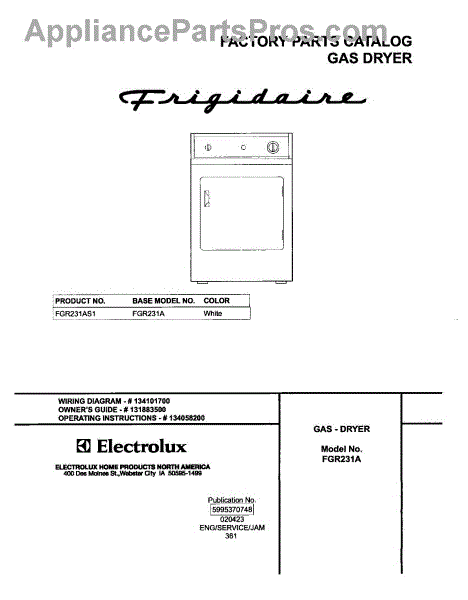 Frigidaire Dryer Parts