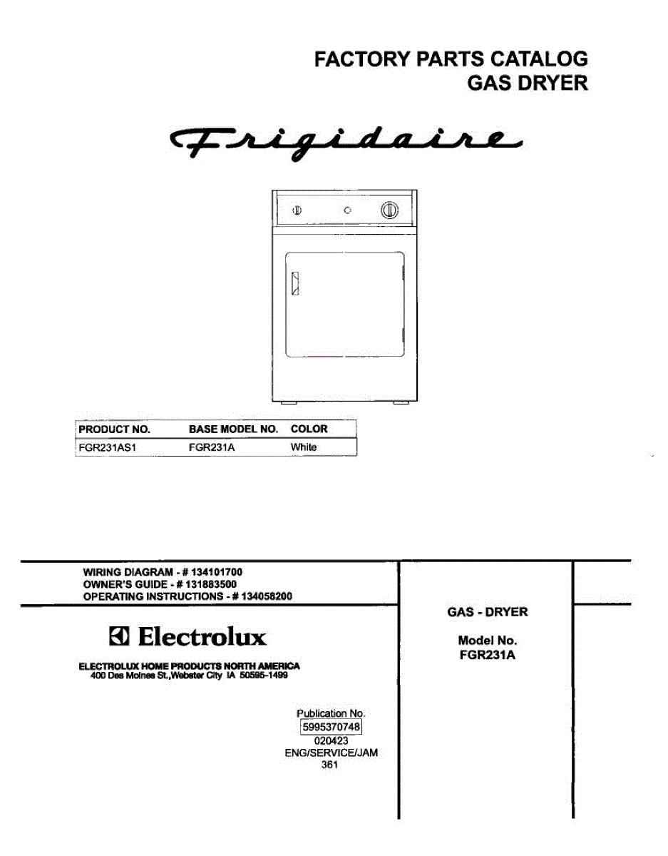 Parts for Frigidaire FGR231AS1: 01 - Cover Parts