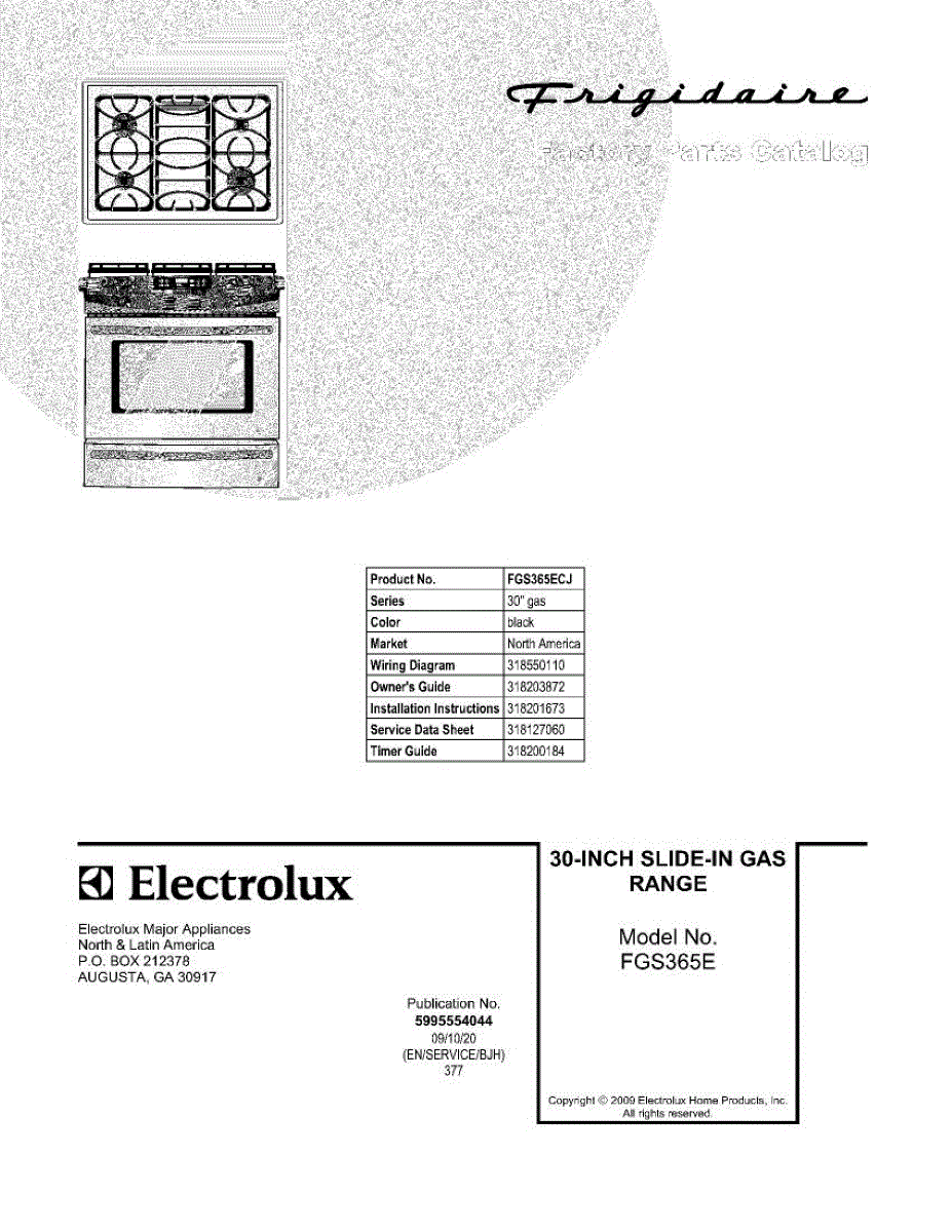 Parts for Frigidaire FGS365ECJ: 01 - Cover Parts