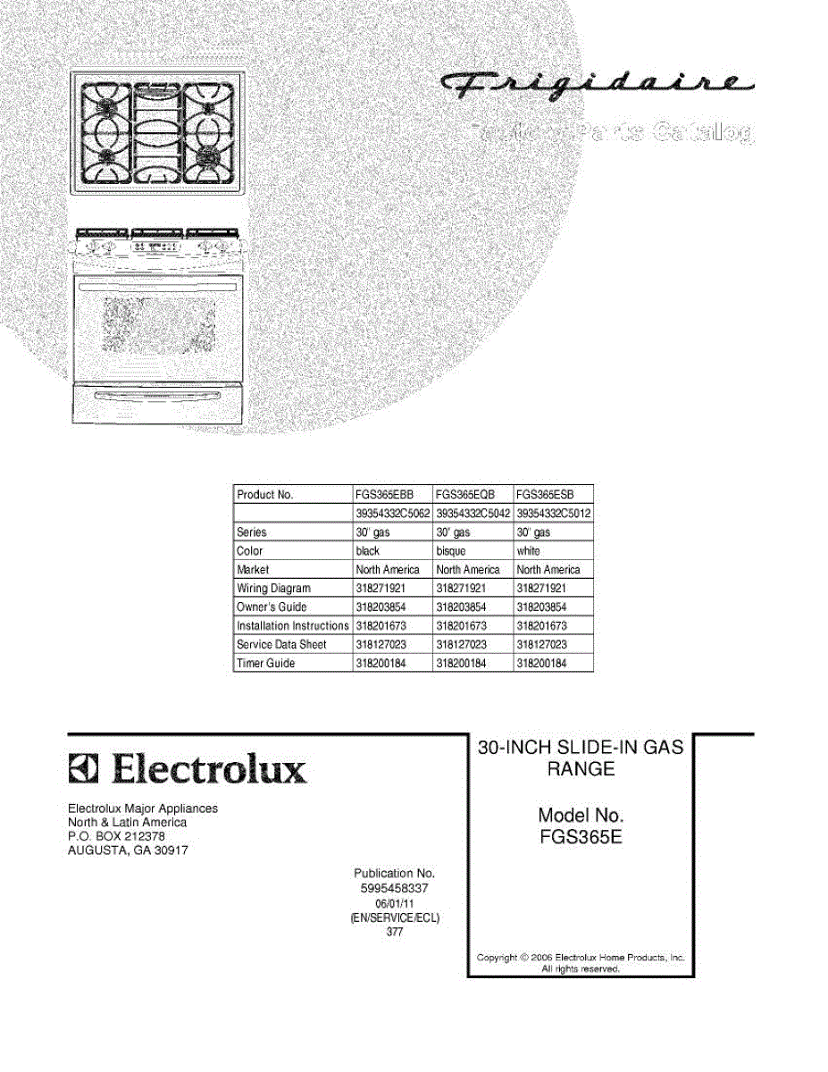 Parts for Frigidaire FGS365EQB: 01 - Cover Parts