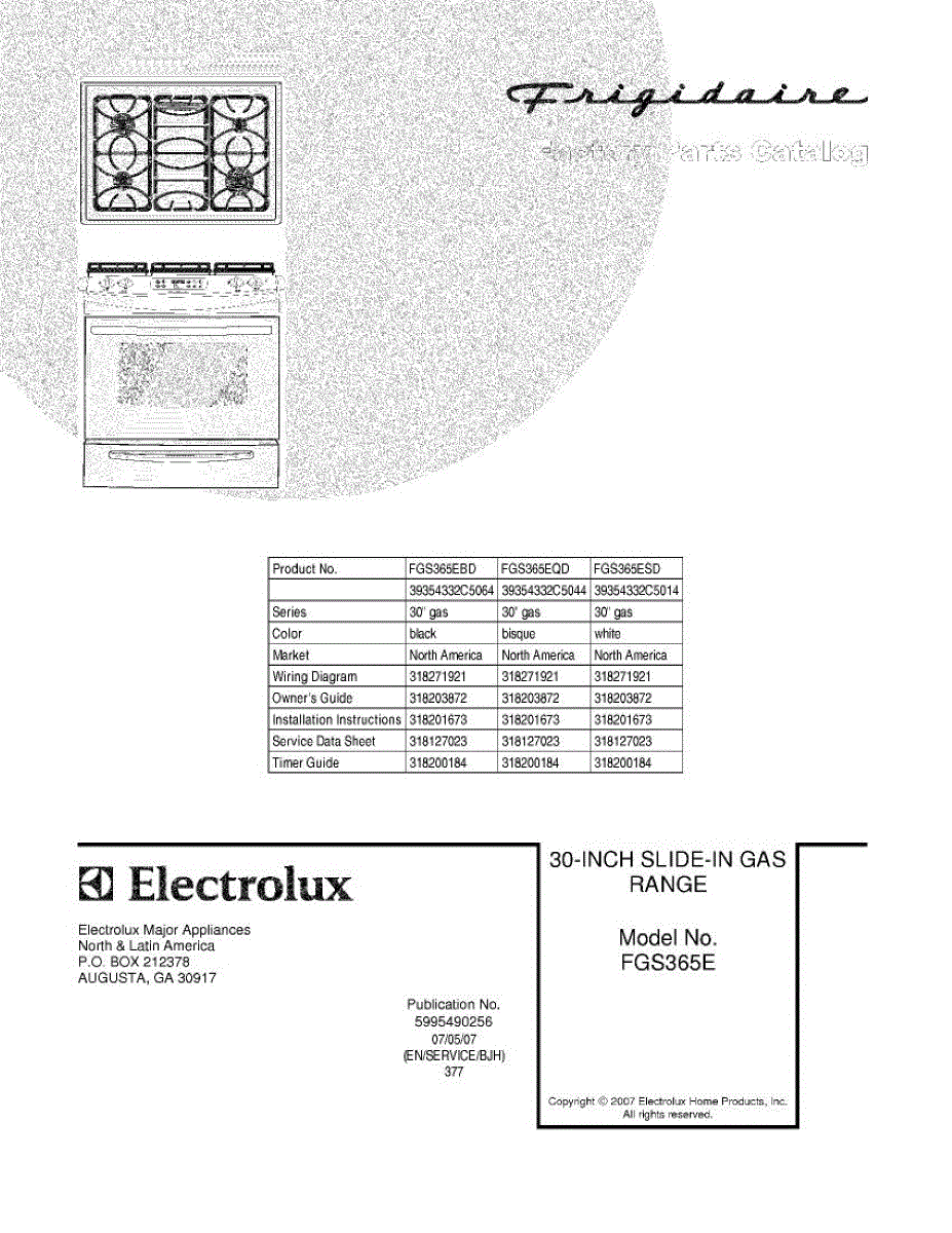 Parts for Frigidaire FGS365ESD: 01 - Cover Parts