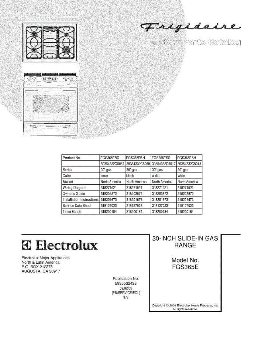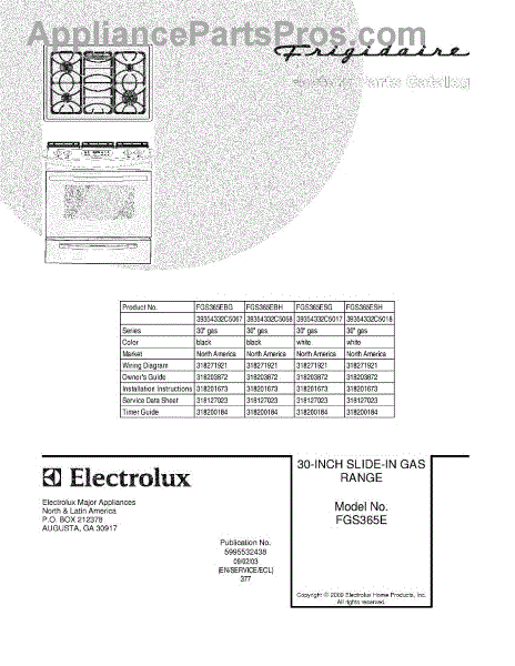 Parts for Frigidaire FGS365ESG: 01 - Cover Parts