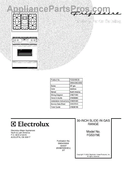 Parts for Frigidaire FGS379ECB: 01 - Cover Parts