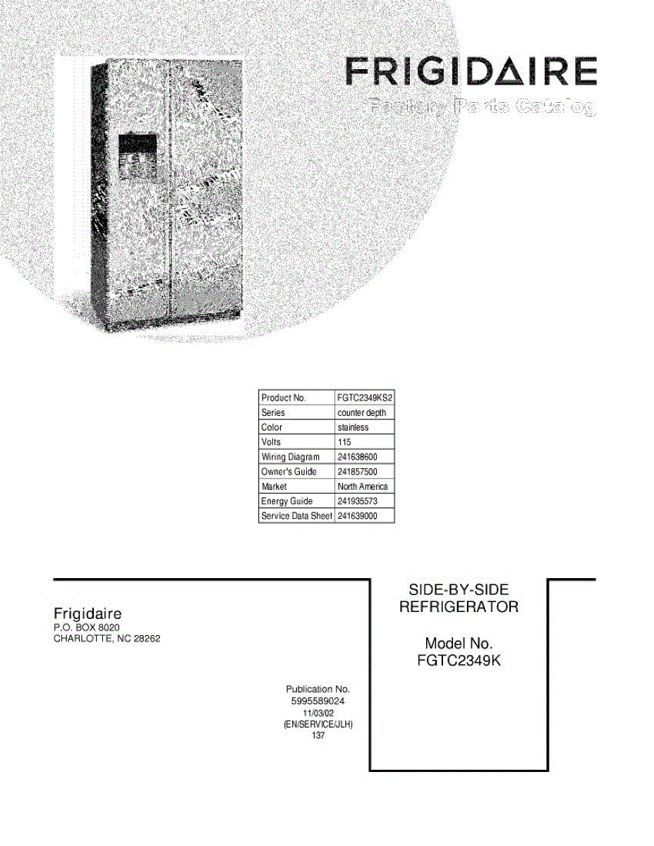 Parts for Frigidaire FGTC2349KS2: 01 - Cover Parts