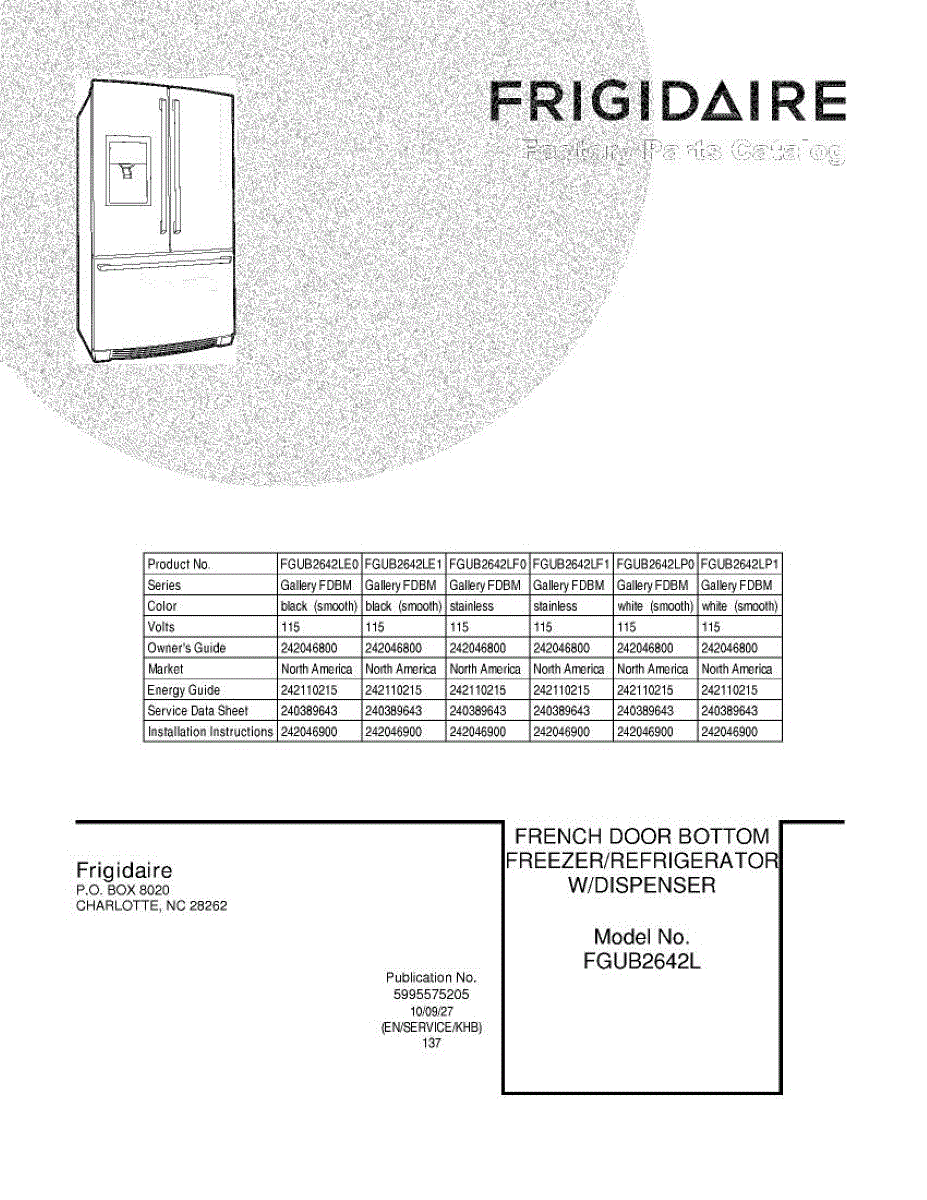 Parts for Frigidaire FGUB2642LE1: 01 - Cover Parts