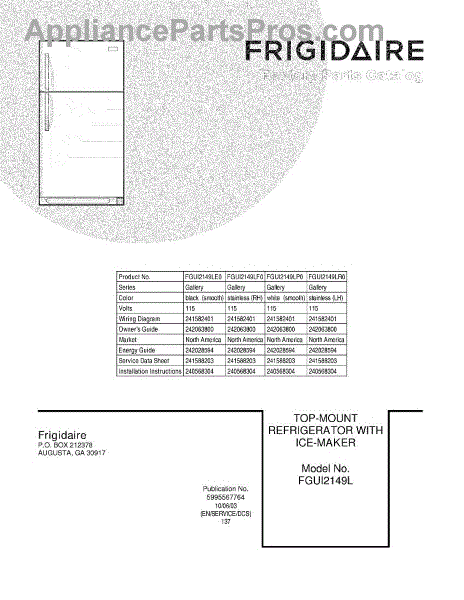 Parts for Frigidaire FGUI2149LF0: 01 - Cover Parts