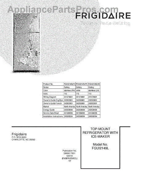 Parts for Frigidaire FGUI2149LP3: 01 - Cover Parts