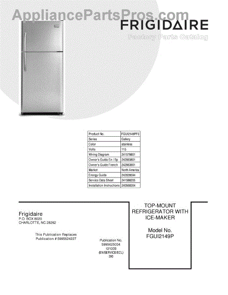 Parts for Frigidaire FGUI2149PF0: 01 - Cover Parts