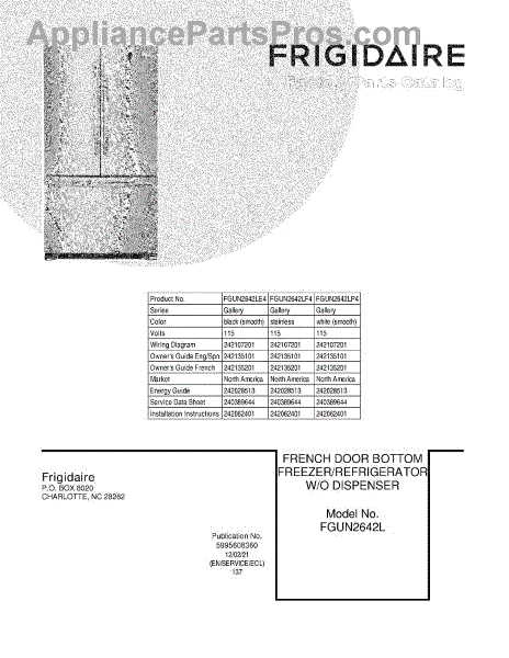 Parts for Frigidaire FGUN2642LE4: 01 - Cover Parts