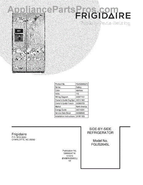 Parts for Frigidaire FGUS2645LF2: 01 - Cover Parts