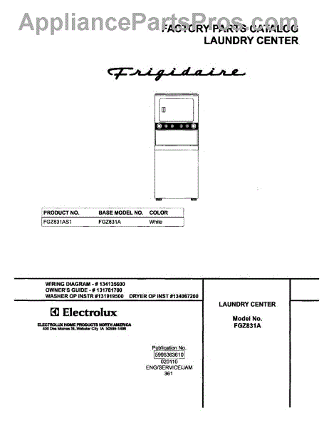 Frigidaire Washer Dryer Combo Parts