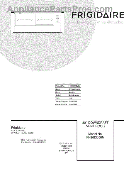 Parts for Frigidaire FH30DD50MSA: 01 - Cover Parts