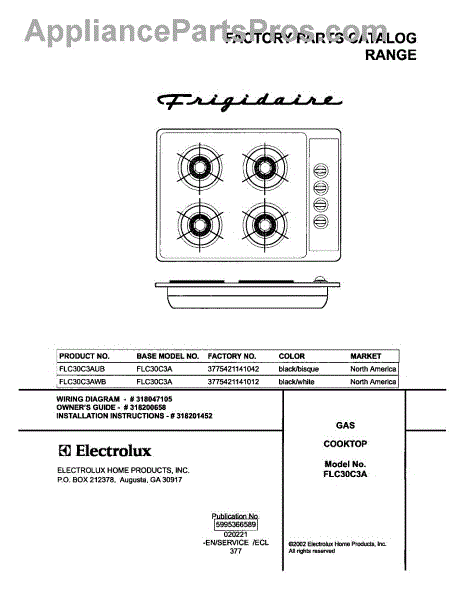 Parts for Frigidaire FLC30C3AWB: 01 - Cover Parts