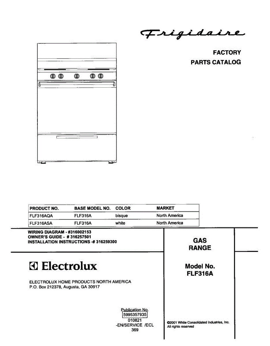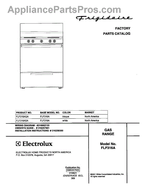 Parts for Frigidaire FLF316ASA: 01 - Cover Parts