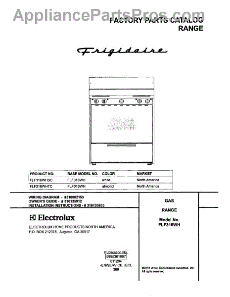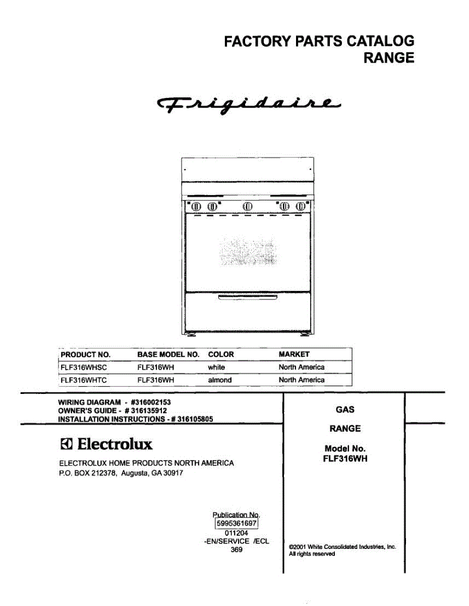 Parts for Frigidaire FLF316WHTC: 01 - Cover Parts