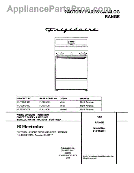Parts for Frigidaire FLF335CHSC: 01 - Cover Parts