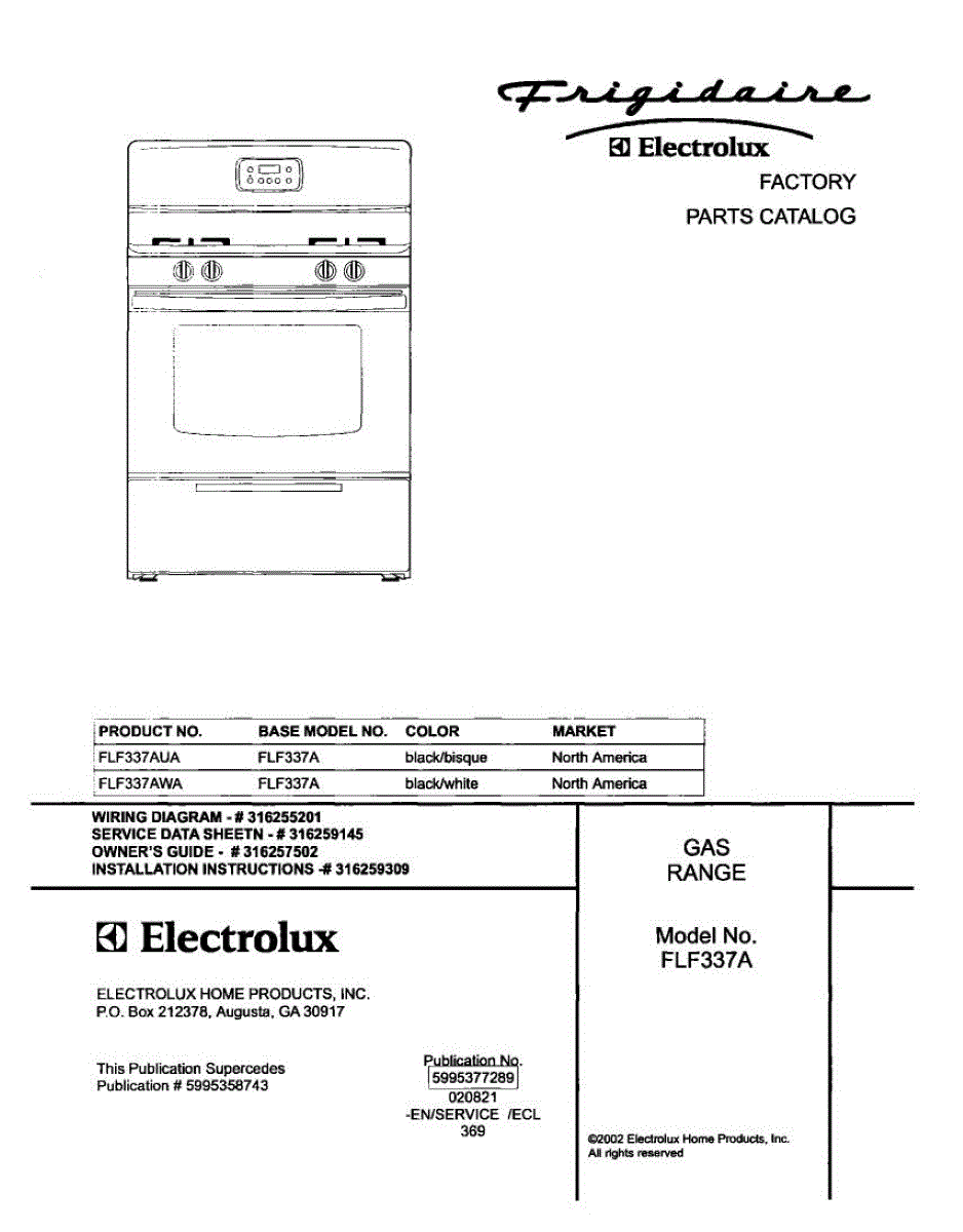Parts for Frigidaire FLF337AWA: 01 - Cover Parts