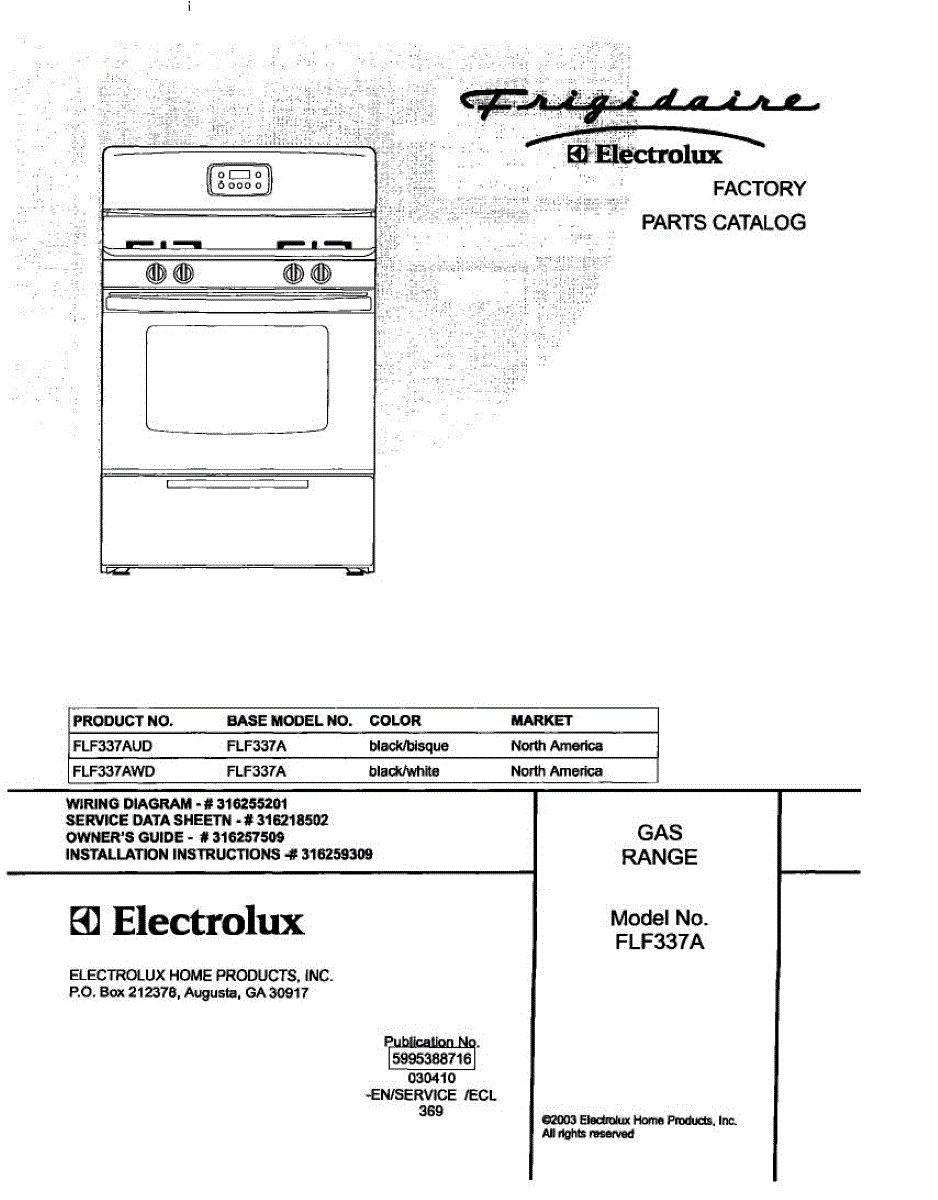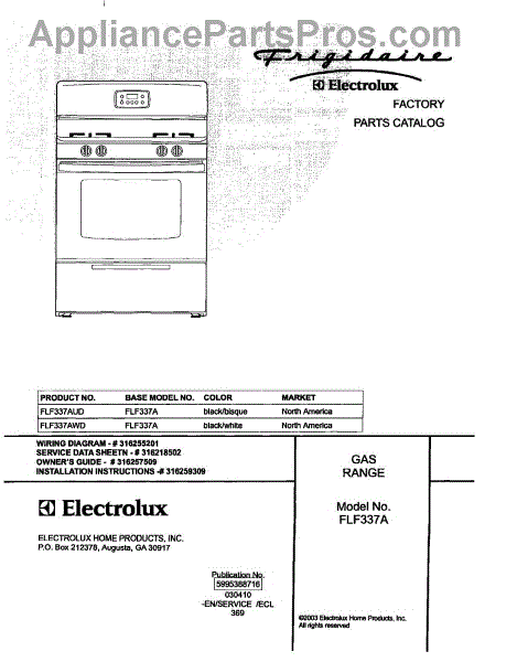 Parts for Frigidaire FLF337AWD: 01 - Cover Parts