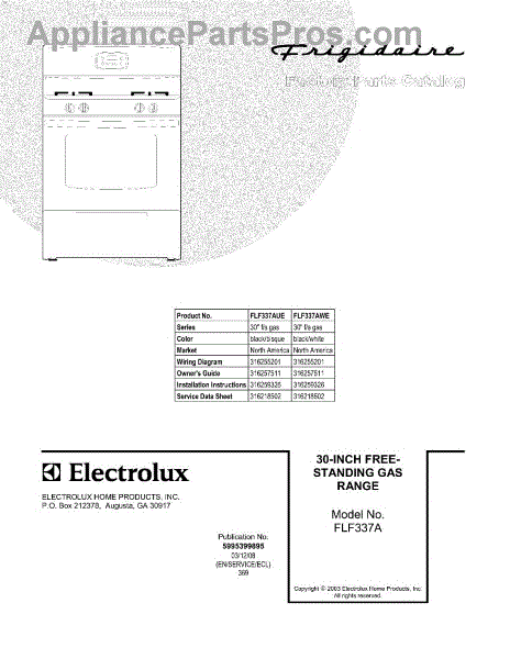 Parts for Frigidaire FLF337AWE: 01 - Cover Parts
