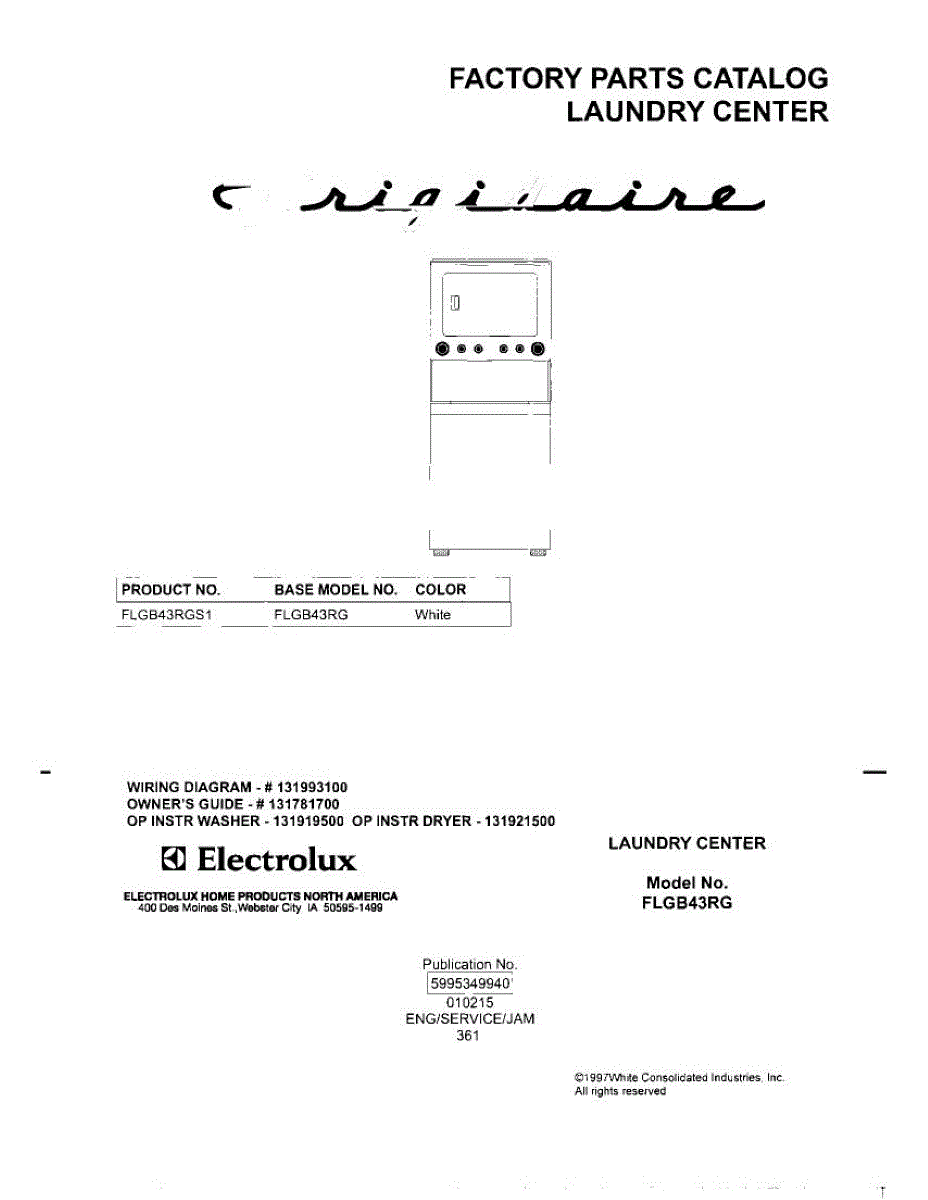 Parts for Frigidaire FLGB43RGS1: 01 - Cover Parts