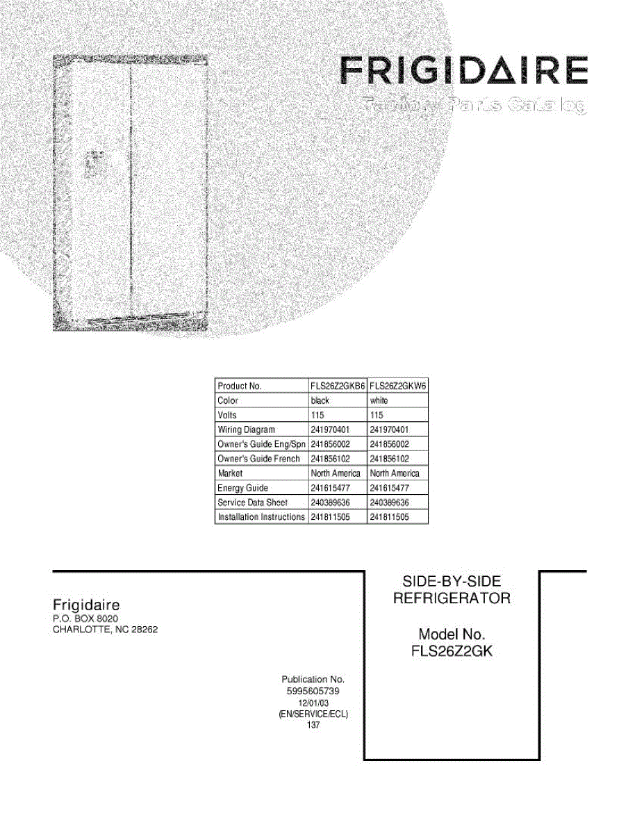 Parts for Frigidaire FLS26Z2GKW6: 01 - Cover Parts