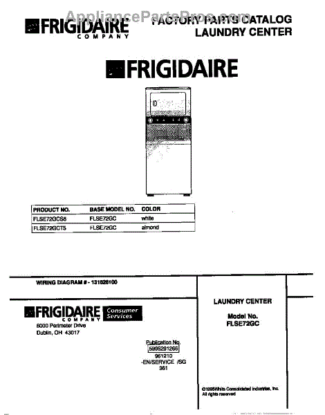 Parts for Frigidaire FLSE72GCS5: 01 - Cover Parts