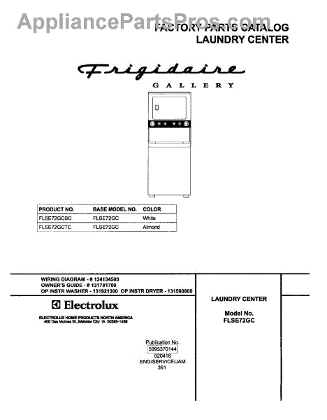 Parts for Frigidaire FLSE72GCTC: 01 - Cover Parts
