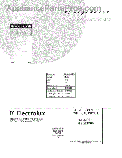 Parts for Frigidaire FLSG62MRFS4: 01 - Cover Parts