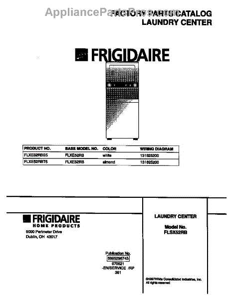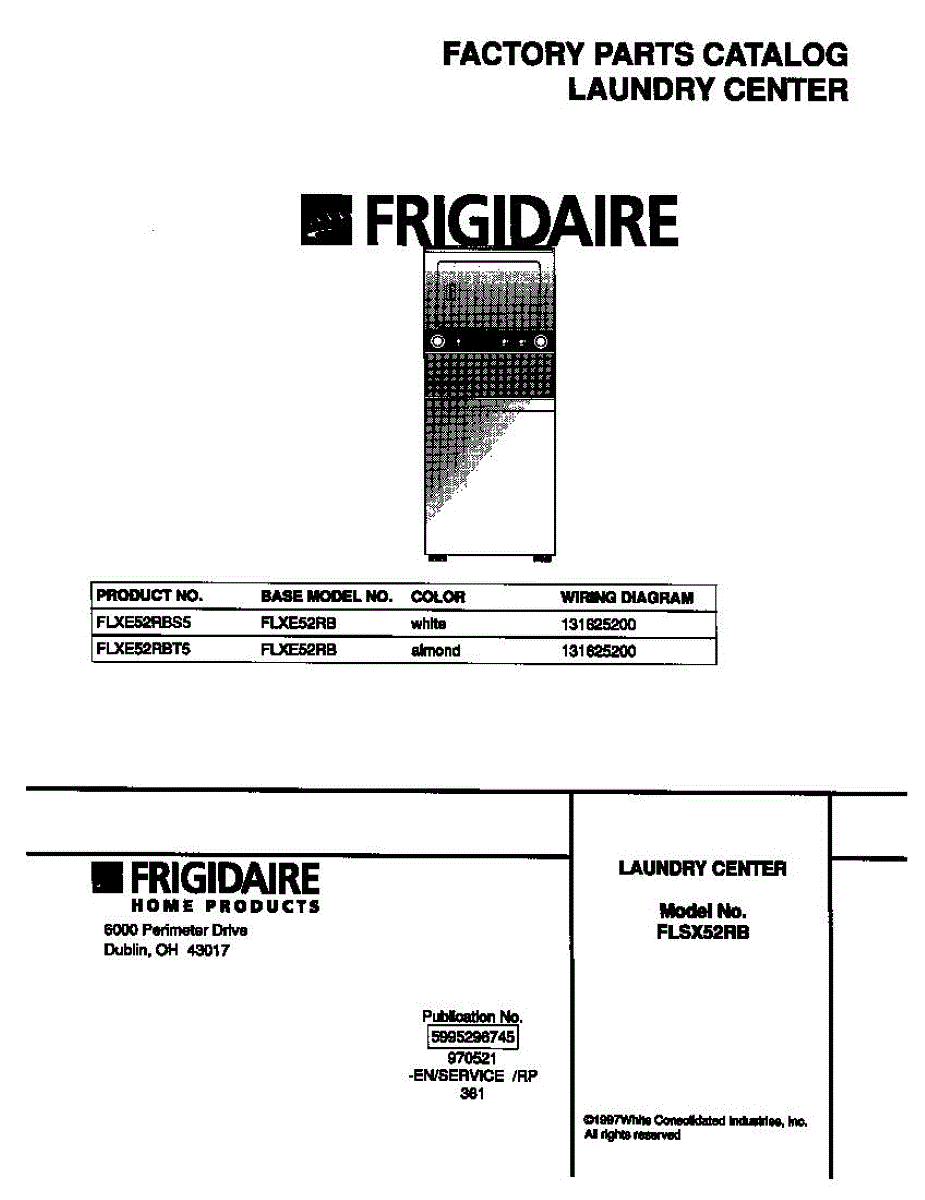 Parts for Frigidaire FLXE52RBT5: 01 - Cover Parts