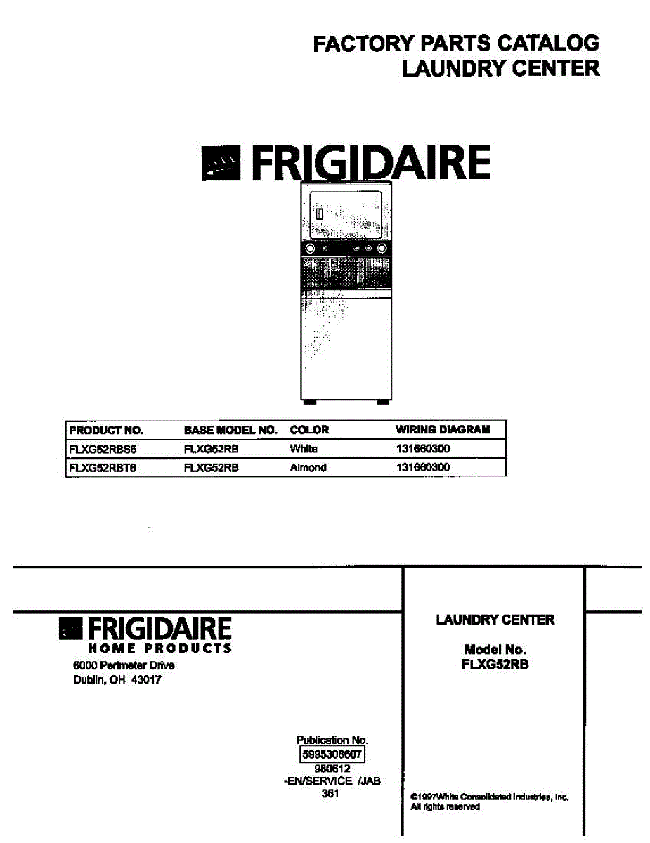 Parts for Frigidaire FLXG52RBS6: 01 - Cover Parts