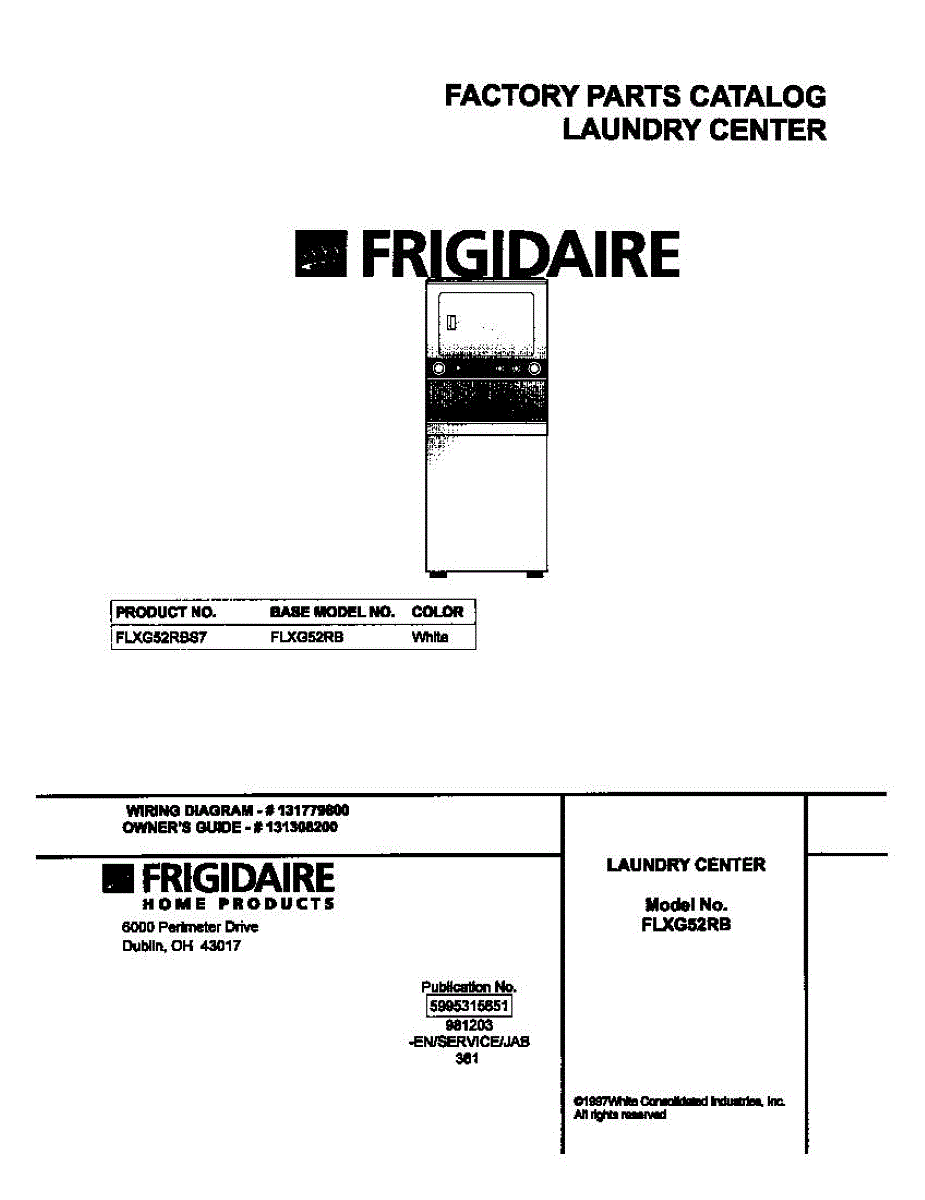 Parts for Frigidaire FLXG52RBS7: 01 - Cover Parts