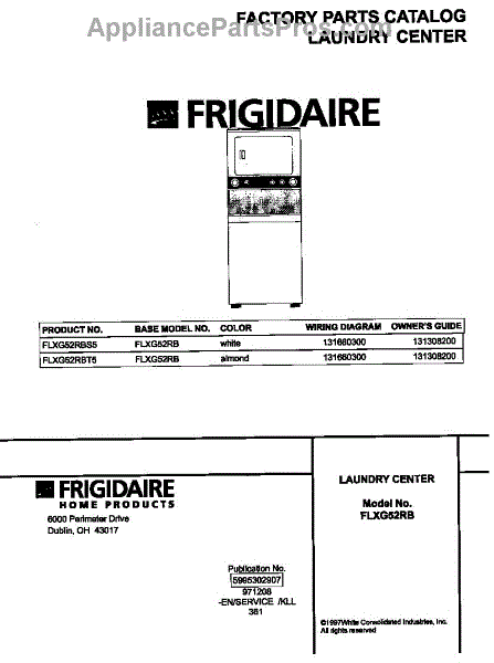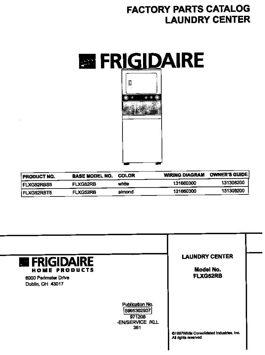 Parts for Frigidaire FLXG52RBT5: 01 - Cover Parts