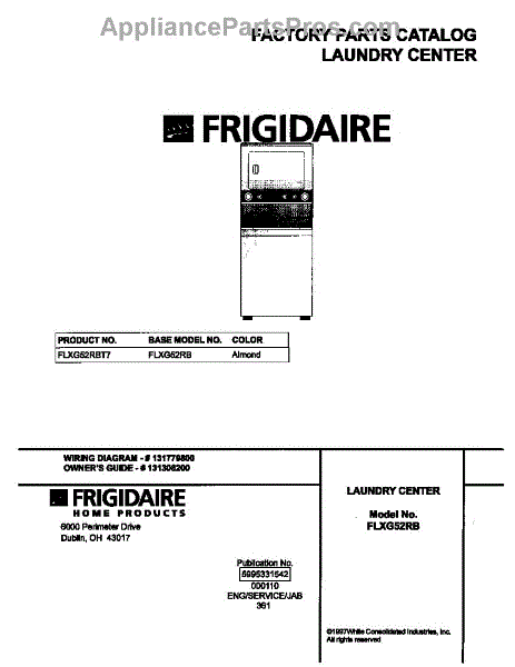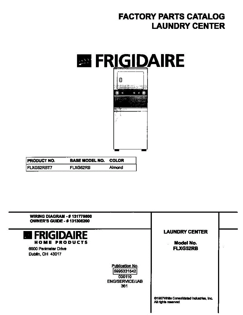 Parts for Frigidaire FLXG52RBT7: 01 - Cover Parts