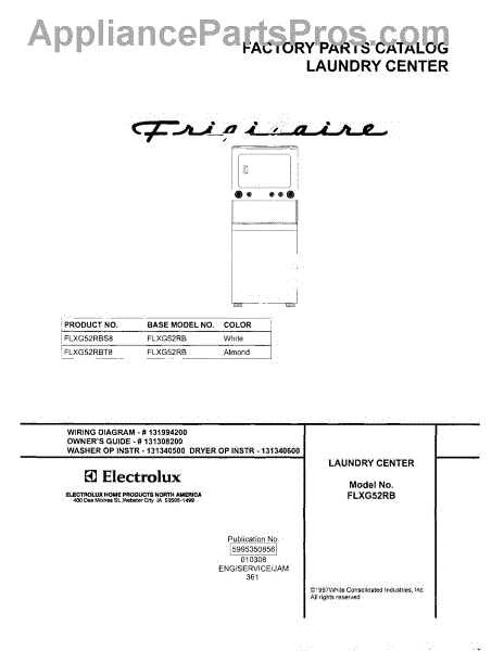 Parts for Frigidaire FLXG52RBT8: 01 - Cover Parts