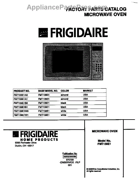 Parts for Frigidaire FMT139E1A1: 01 - Cover Parts